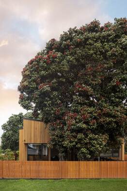 Architect Geoff Lentz was delighted to follow the client’s suggestion that all the existing pōhutukawa trees on the site be retained. This idea was a key driver throughout the design process.