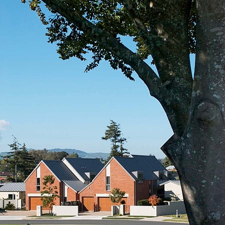 Le Quesnoy Place on the edge of the Cambridge town centre, occupies an enviable location on the banks of the Waikato River. The neighbourhood comprises fifteen, high-quality, two-storey homes designed to complement each other with similar architectural forms, materials and features. The project is inspired Cambridge’s sister-city relationship with Le Quesnoy in France, by the owner’s connection to Europe combined with their long-standing commitment to the unique character legacy of Cambridge.