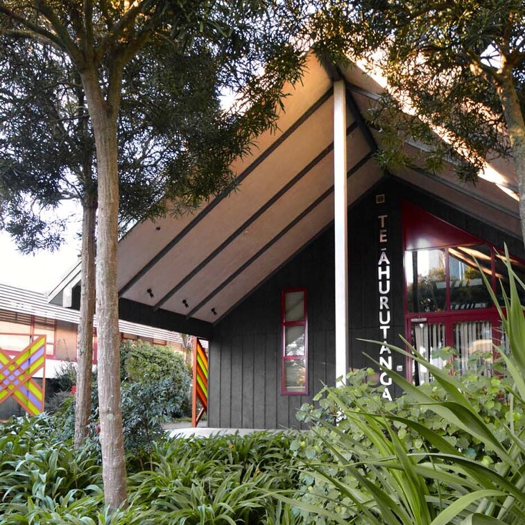 Te Āhurutanga is in a class of its own on the Waikato University campus. The single-storey cedar building with its steeply pitched roof and deep verandas has the unmistakable air of a Māori whare, and it stands proud and colourful among the neighbouring buildings. Te Āhurutanga has recently begun a new chapter in its campus history and it has a new look to complement the change of status, a look that weaves together its past and present roles and offers a creative environment for those who work there.