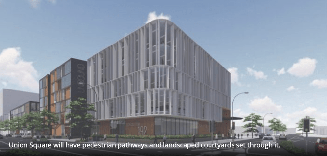 Currently under construction in Hamilton is Union Square built over a half city block; a multi-building tower development, with pedestrian pathways and landscaped courtyards set through it.