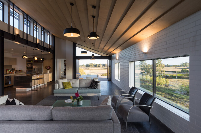 - an east-west truss design with high level clerestory windows allows daylight and north sun deep into living spaces, despite southerly aspect designed to capture the view