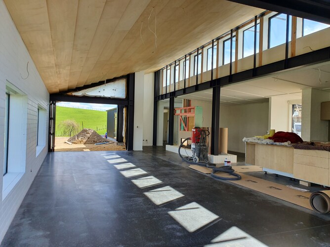 - substantial areas of honed concrete floor for sun-heated thermal mass