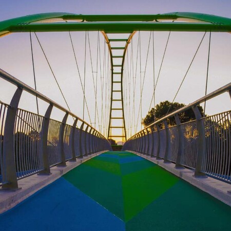 PAUA Architects was commissioned by the Perry Charitable Trust to design a thematic concept for the Horotiu cycle and pedestrian bridge on the Te Awa River Ride. With the form of the bridge in place, the project brief was to bring personality and celebration of the river crossing to the design using colour, pattern and lighting. A super-graphic weave designed for the deck of the bridge references the history of the area, which is known for its flax industry.