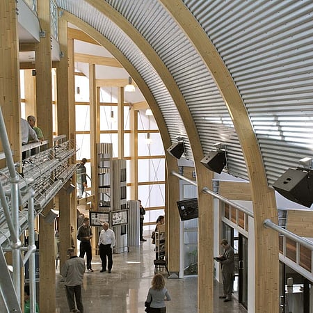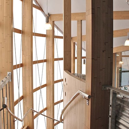 Fusing high energy performance with beautiful craftsmanship, the NZCEC is a showcase for clean energy, industry collaboration, and innovation. The architecture is designed to demonstrate a commitment to low-environmental impact in the construction and life of a building, and to provide a stimulating landmark workplace.