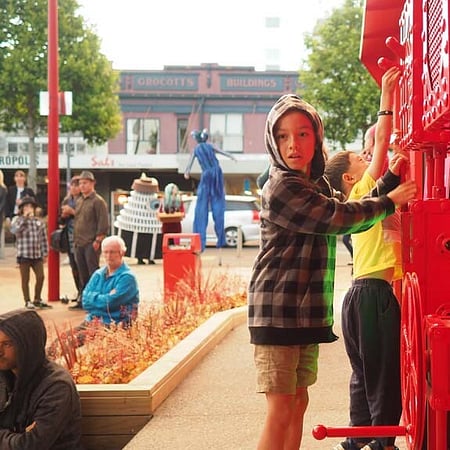 PAUA’s design team closely collaborated with the community to deliver a unique, and dynamic park that celebrates all things Rocky Horror. The Riff Raff statue in Embassy Park commemorates Richard O’Brien, writer of the Rocky Horror Picture Show,who lived in Hamilton and worked at the Embassy Theatre previously on the site. The project was a community-led initiative and heavily reliant on donations, community funders, and in-kind support.