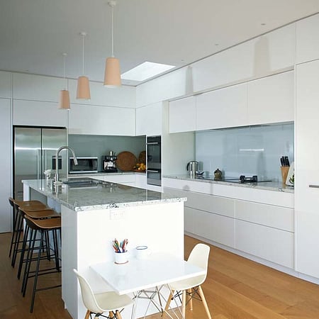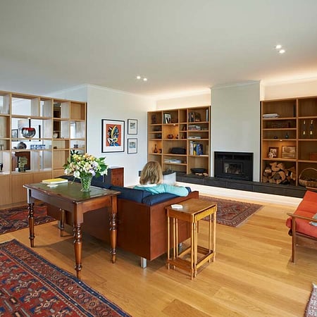 The original design and layout had some curious spaces and poor flow between living, kitchen, and dining spaces, and little connection to the outdoors. This all meant it didn’t work well for the owners’ love of entertaining guests, nor for the recent return of their daughter and her family to cohabit with them.
