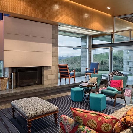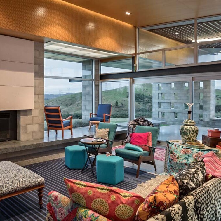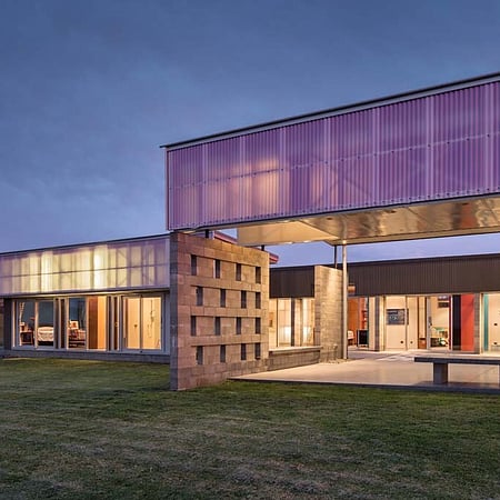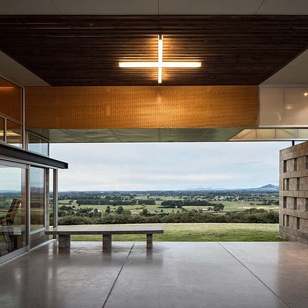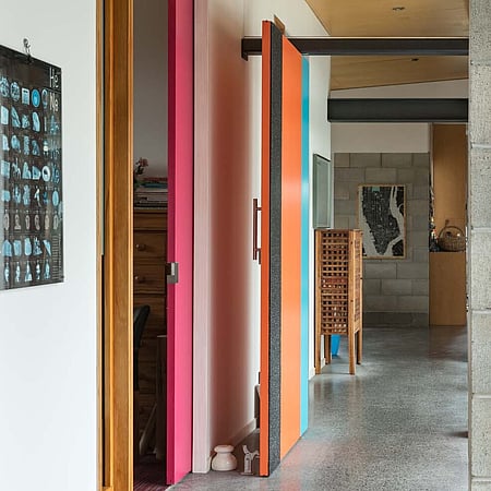 The project brief was for a stand-alone farmhouse of 250 square metres on a hilltop site south of Cambridge. The architecture evolved as a series of connected spaces to form a protected internal courtyard, and with every space making the most of the tremendous elevated countryside views. The owner’s connection to this place, and their passionate life in full colour is reflected, revealed, and celebrated in this home.