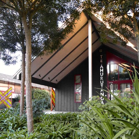 As he takes a tour of the building, Mauriohooho points out the subtle and singular ways Te Āhurutanga has become a stunning new place at the old address. Previously, Te Āhurutanga turned its back on its warm north side facing the university library. This area has now been opened up to offer a welcoming entrance with a sunny mahau (verandah), and visitors step into a small reception area glowing with colour, light and artwork. On the south end, extra space has been cribbed from the original south mahau, now enclosed to form a comfortable meeting area and staff room. A new southern mahau opens to the broad Tainui Courtyard, and this has been redeveloped in tandem with Te Āhurutanga's renovations. It can be used for outdoor functions.