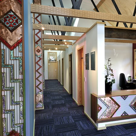 Herearoha Skipper, Manager of Project and Resource for the office, describes Te Āhurutanga as an inspirational environment: “Everybody enjoys coming to work, it's like our home, and we like to bring whānau and friends here to visit. We're really rapt with the way it turned out.”