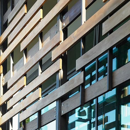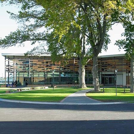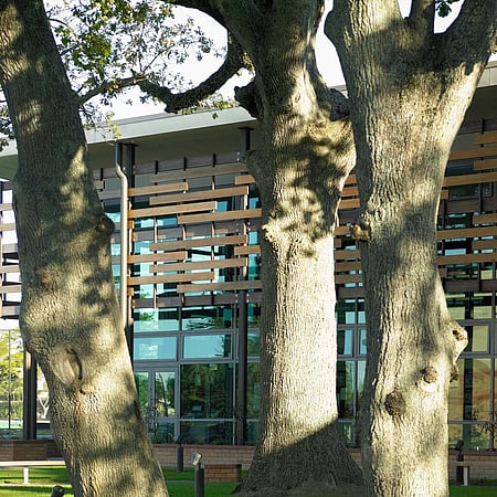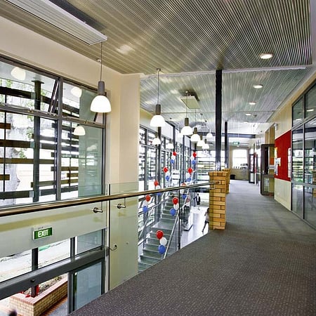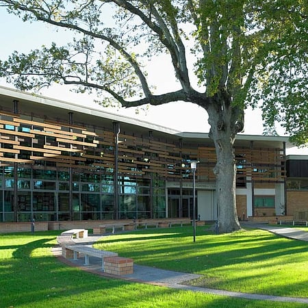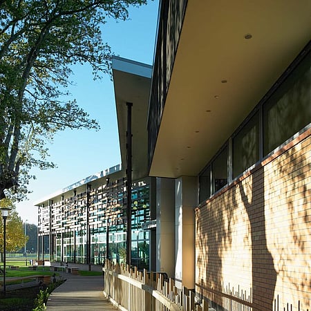 The Sports Education Centre has been designed to complement the distinctive character of the existing school campus, while creating a suitably modern educational environment. The location and orientation of the building within the campus creates a unique outdoor courtyard space, while the glass facade with timber sun shading helps the contemporary building blend in with its natural surrounds.