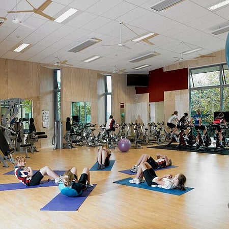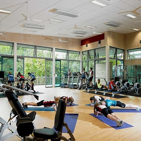 The 1200sqm two-storey centre, commissioned through a design competition and designed to 4 Green Star equivalence, accommodates a gymnasium fitness room, classrooms and changerooms, offices and shops.