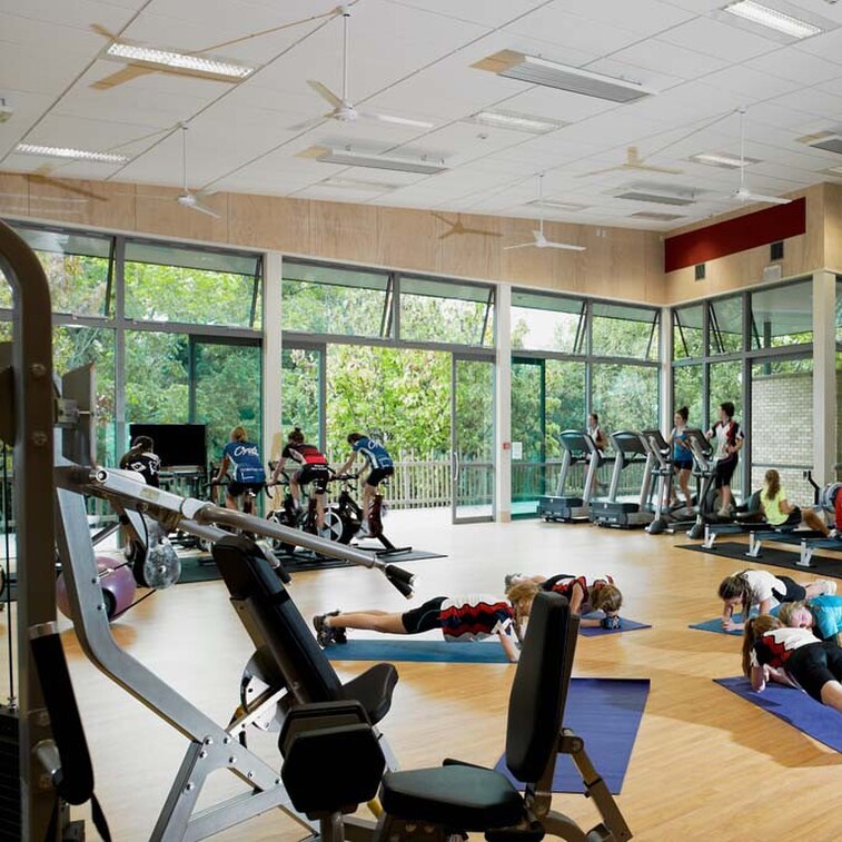The 1200sqm two-storey centre, commissioned through a design competition and designed to 4 Green Star equivalence, accommodates a gymnasium fitness room, classrooms and changerooms, offices and shops.