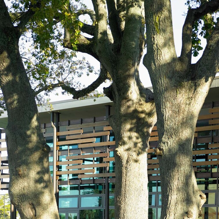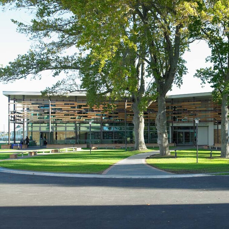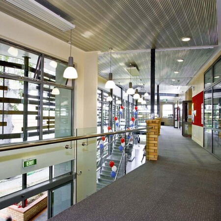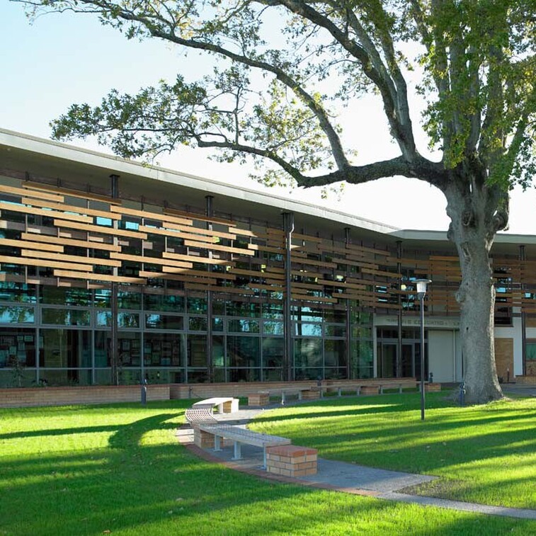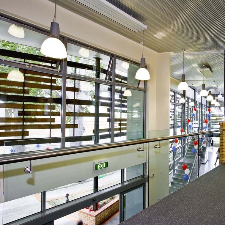 The Sports Education Centre has been designed to complement the distinctive character of the existing school campus, while creating a suitably modern educational environment. The location and orientation of the building within the campus creates a unique outdoor courtyard space, while the glass facade with timber sun shading helps the contemporary building blend in with its natural surrounds.