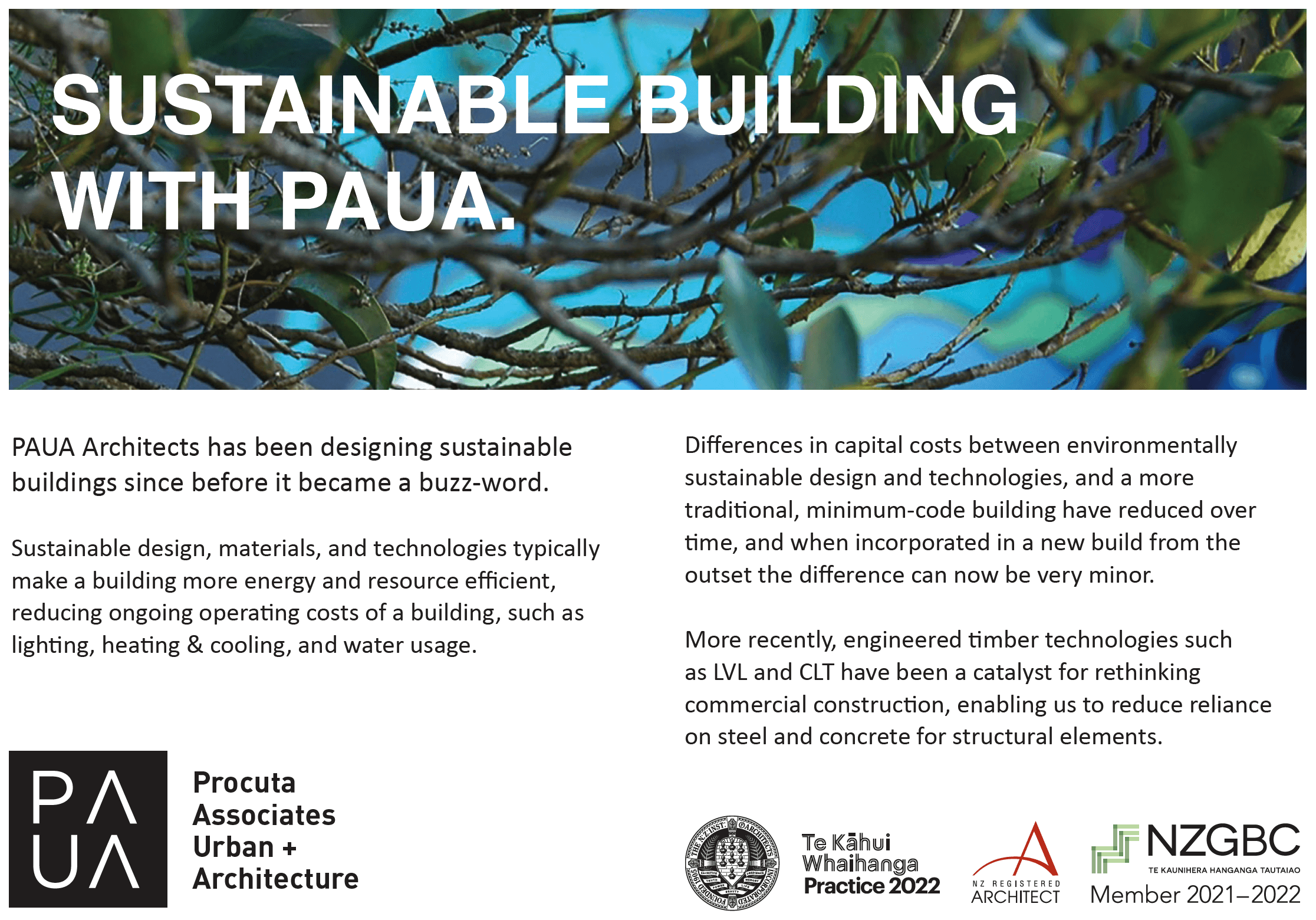 Register your email to download our Sustainable Building e-book and learn more about sustainability and the sustainable building strategies and technologies PAUA has used in our projects.